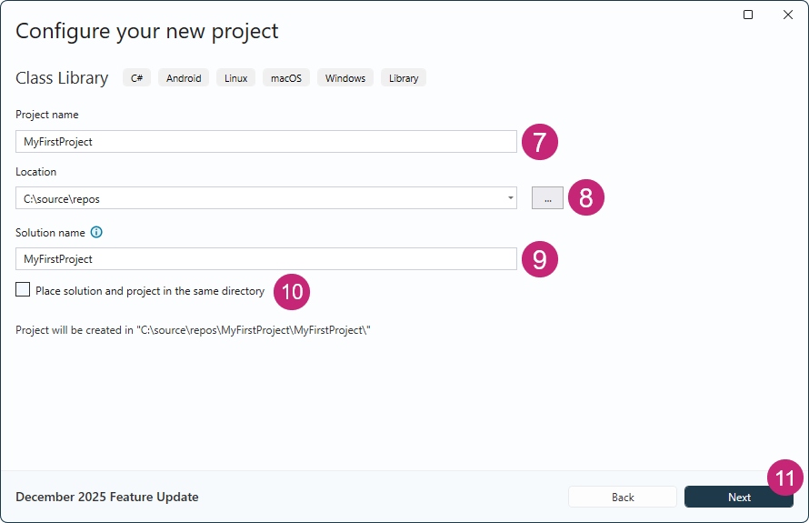 - In the Templates list, select Class Library - A project for creating a class library that targets .NET or .NET Standard.