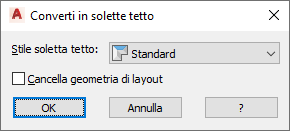 . Nel foglio di lavoro Converti in solette tetto vengono visualizzati gli stili di soletta del tetto esistenti nel disegno corrente.