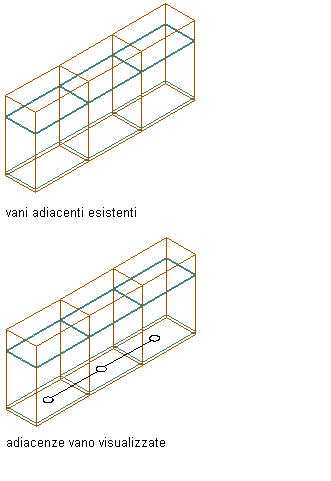 Nella maggior parte dei casi le relazioni di adiacenza tra le superfici vano sono importanti per l'esportazione e l'elaborazione dei piani costruttivi in un'applicazione ingegneristica. Per verificare lo stato delle relazioni di adiacenza in Set di strumenti AutoCAD Architecture 2027, è possibile rendere visibili tali relazioni nel disegno.