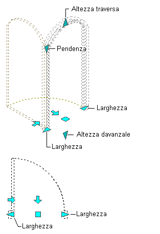 Gli oggetti di Set di strumenti AutoCAD Architecture 2027 sono dotati di grip che ne consentono la modifica. Per visualizzare una descrizione della funzione del grip, posizionare il cursore sul grip.