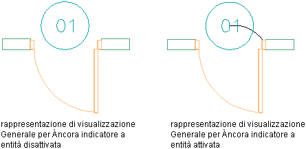 Per visualizzare il collegamento corrente tra un indicatore di computo e un oggetto, attenersi alla procedura indicata di seguito. La visualizzazione dei collegamenti è particolarmente utile in presenza di molti indicatori, soprattutto quando non si è al corrente delle relative associazioni. Questa procedura consente di attivare la rappresentazione di visualizzazione Generale per le opzioni Àncora indicatore ad entità e Àncora indicatore esteso ad entità nella vista corrente.