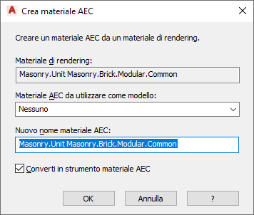 - Verificare che l'opzione Converti in strumento materiale AEC sia selezionata.