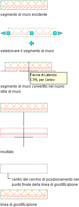 | Scostare il muro dal centro di un componente di muro | Premere CTRL e spostare il cursore sopra il muro fino ad evidenziare il centro del componente. Fare clic una sola volta. |