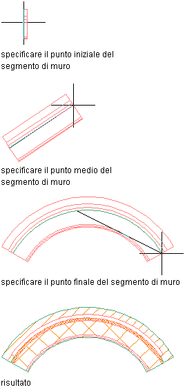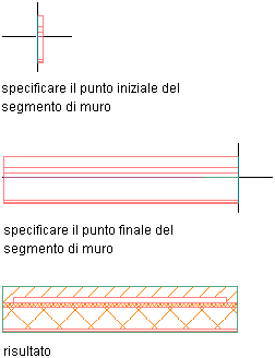 | Completare il segmento di muro in un punto specificato dall'utente | Specificare il punto finale del muro e premere INVIO. |