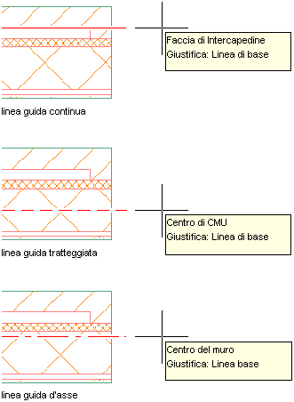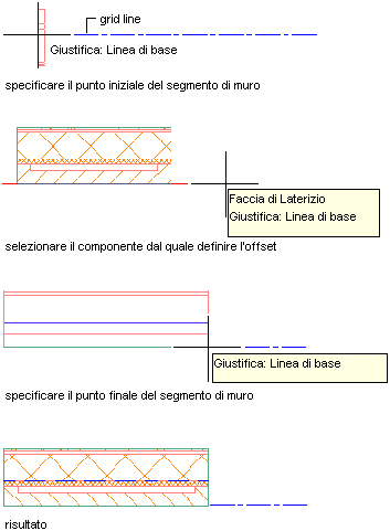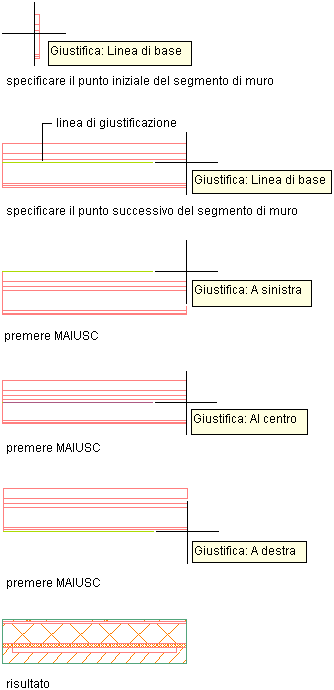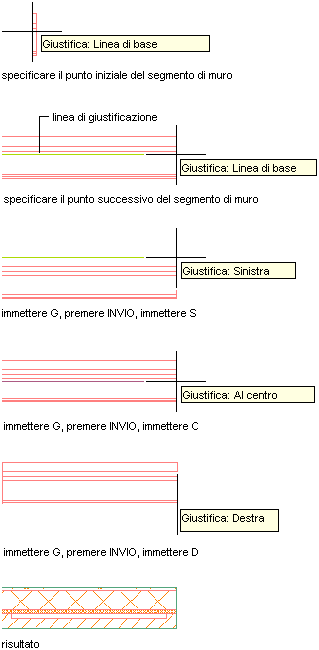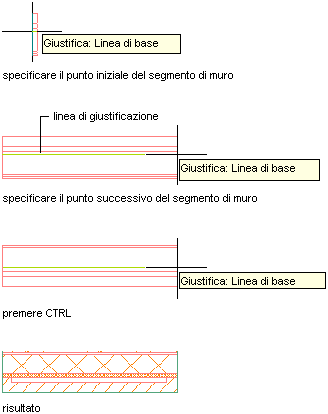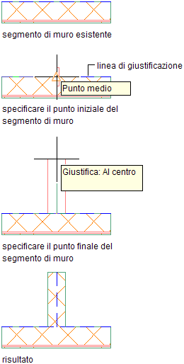 | Specificare dei punti che definiscono la linea d'asse del muro | Selezionare Centro per Giustifica. |