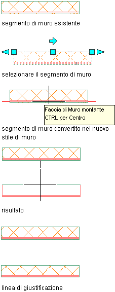 | Scostare il muro dal centro di un componente di muro | Premere CTRL e spostare il cursore sopra il muro fino ad evidenziare il centro del componente. Fare clic una sola volta. |