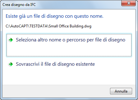 Se il modello (DWT) scelto non presenta le stesse unità del file IFC importato, è possibile scegliere di continuare con il modello oppure selezionarne un altro. Se si sceglie di continuare con il modello selezionato, le unità del file IFC sovrascriveranno le unità nel file del modello.