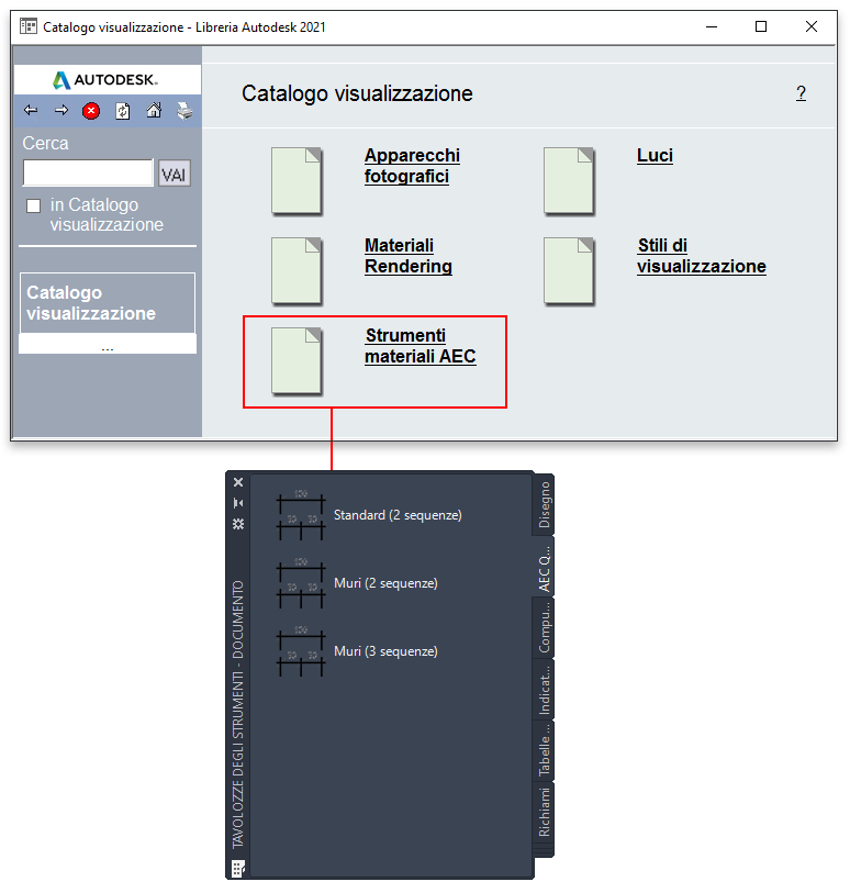 Suggerimento: Se si lavora ad un progetto di Set di strumenti AutoCAD Architecture 2027, è possibile generare un catalogo di strumenti basato sugli stili standard del progetto.