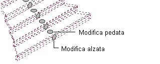 In corrispondenza del punto medio di ciascuna alzata e pedata viene visualizzato un grip.