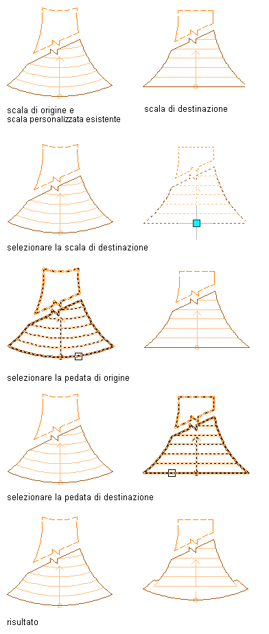 Per modificare la pedata di una scala personalizzata in modo che corrisponda ad una pedata esistente in un'altra scala personalizzata, attenersi alla procedura indicata di seguito.