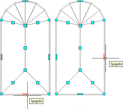 • Sposta: è la modalità di default. Utilizzare questa modalità per spostare il vertice selezionato in qualsiasi direzione. Se necessario, i segmenti vicini vengono stirati.