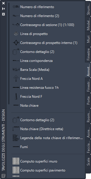 È possibile che le tavolozze personalizzate create dall'amministratore CAD o da altri utenti contengano anche gli strumenti Etichetta di elevazione con le definizioni di blocco multivista e le proprietà personalizzate per i propri progetti o standard aziendali.