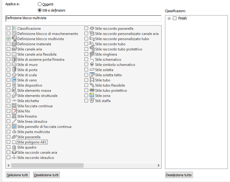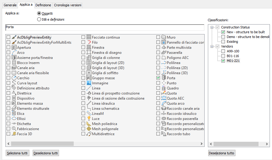 Applicazione di definizioni gruppo voci di computo ad oggetti e stili