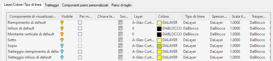 Per specificare le proprietà di uno o più piani di taglio per uno stile di facciata continua, attenersi alla procedura indicata di seguito. Le proprietà di visualizzazione del piano di taglio si applicano solo per visualizzare le rappresentazioni, ad esempio Piano, utilizzate nella vista dall'alto (vista piana) di un disegno.