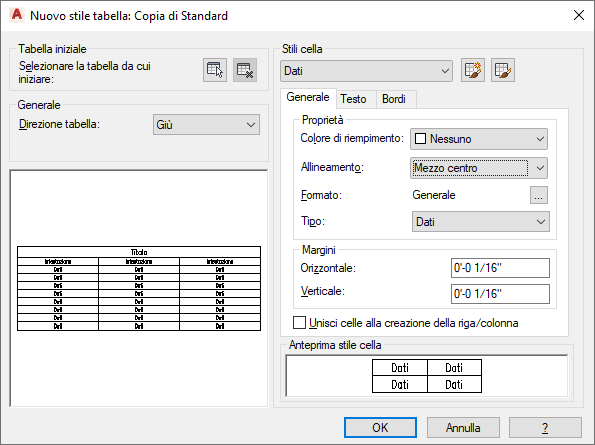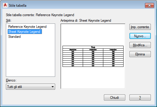 Per le legende delle note chiave vengono utilizzati stili di tabella AutoCAD. Per modificare gli stili di tabella disponibili, attenersi alla procedura indicata di seguito.