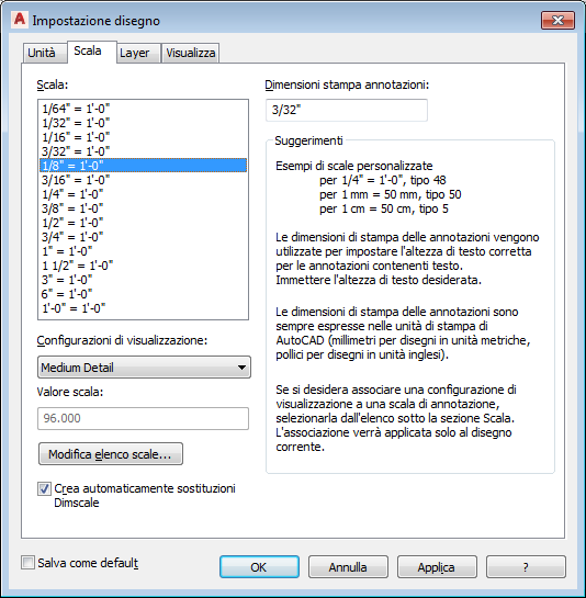 Nota: I blocchi personalizzati non vengono scalati correttamente se gli oggetti ai quali sono associati (ad esempio le porte con pomoli e maniglie) vengono copiati e incollati in un disegno con unità di disegno diverse.
