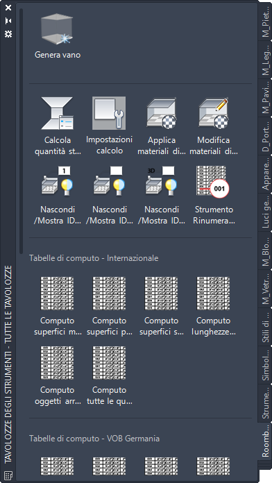 Nota: I computi verranno completati correttamente con i dati di Roombook solo se le tabelle di computo inserite e lo standard di calcolo (internazionale o VOB) corrispondono.