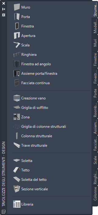 Le tavolozze seguenti contengono uno o più strumenti Assieme porta/finestra.