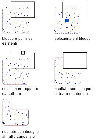 Sottrazione di parte di un blocco con una polilinea esistente
