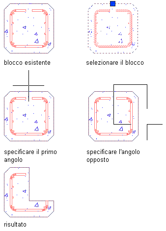 Sottrazione di parte di un blocco specificando gli angoli del rettangolo