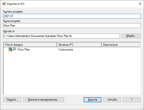 IFC (Industry Foundation Class). In alternativa, alla riga di comando, immettere ifcexport.