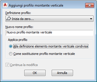 | Da un profilo già esistente nel disegno | Selezionare il profilo esistente per Definizione profilo e scegliere Continua la modifica. |