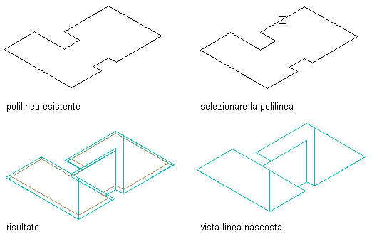 - Disegnare una polilinea chiusa 2D nella forma del tetto ricercato e nella posizione in cui collocare il tetto.