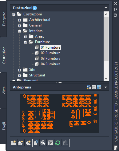 2. Nel Navigatore progetto aprire la scheda Costruzioni, Viste o Fogli.