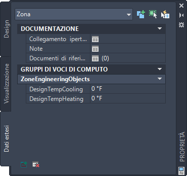 Prima di esportare i dati in formato gbXML, è necessario assegnare tutti i vani ad una zona. Una zona può essere configurata per l'analisi specificando le temperature di riscaldamento e di raffreddamento per la zona.