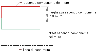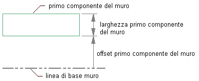 Nota: Non definire componenti di muro con degli offset di prospetto al di sopra di Parte superiore muro o al di sotto di Parte inferiore muro. I muri contenenti componenti associati a tali valori non vengono posizionati né visualizzati correttamente quando si modificano le relative linee del tetto o del pavimento. Per evitare i problemi di posizionamento e di visualizzazione, definire i componenti del muro con degli offset di prospetto al di sopra di Altezza base o al di sotto di Linea di base.
