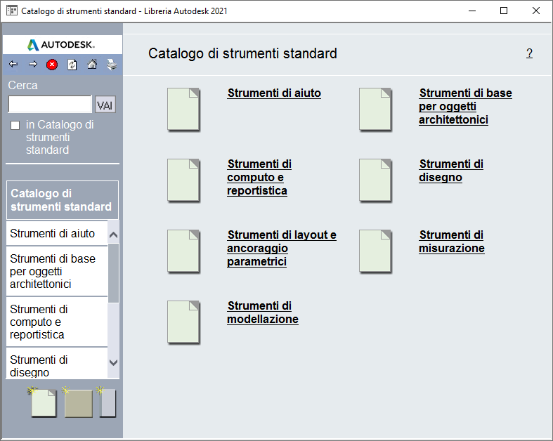 Visualizzazione del catalogo di strumenti standard
