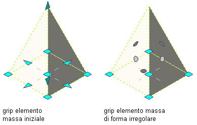 Quando si seleziona il grip Faccia dell'elemento massa di forma irregolare, viene visualizzata la seguente descrizione.