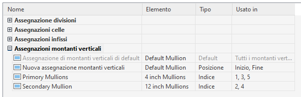 Nell'elenco delle assegnazioni di montanti verticali verrà visualizzata una nuova assegnazione.