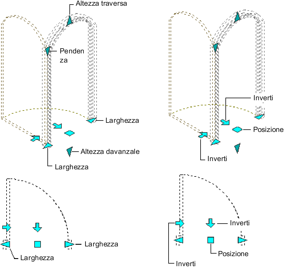 Consente di modificare la larghezza di una porta. Nota: Il grip è in un primo tempo impostato per vincolare la dimensione ad uno dei valori standard definiti per lo stile di porta.