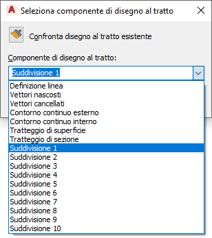 (Confronta disegno al tratto esistente) e selezionare il disegno al tratto del prospetto con il componente di visualizzazione che si intende confrontare.