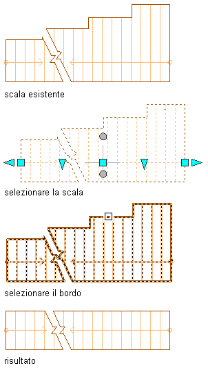 Per ripristinare il profilo di default del bordo della scala selezionato, attenersi alla procedura indicata di seguito. Se la scala viene riportata alla condizione originale, viene ripristinato il valore originale anziché *VARIA* del campo Larghezza. La modifica influisce su pedate, alzate e montanti.