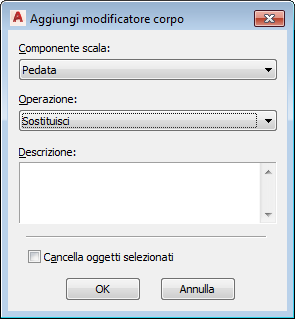 4. Nella finestra di dialogo Aggiungi modificatore corpo, selezionare Montante nell'elenco a discesa Componente scala e Sostituisci nell'elenco a discesa Operazione.