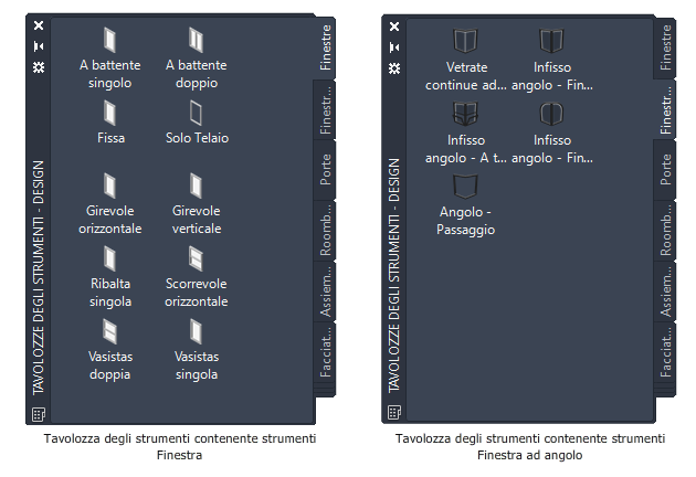 | Tavolozze degli strumenti personalizzate create dall'amministratore CAD | Strumenti Finestra con stili di finestra e proprietà personalizzati per i propri progetti o metodi di lavoro |