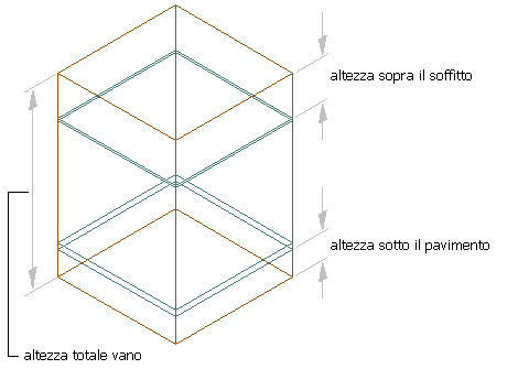 Per default la direzione Z viene impostata su 0 e ignorata durante la creazione, la modifica e il computo del vano. I vani 2D possono essere rettangolari o poligonali, associativi o non associativi. Sono delimitati da oggetti 3D e disegno al tratto e in genere vengono utilizzati nelle viste piane, in cui non sono necessarie informazioni 3D.