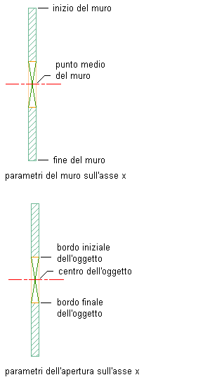 Utilizzare il punto medio del muro come punto di riferimento In Posiziona lungo (X), selezionare Punto medio del muro per l'opzione Da.