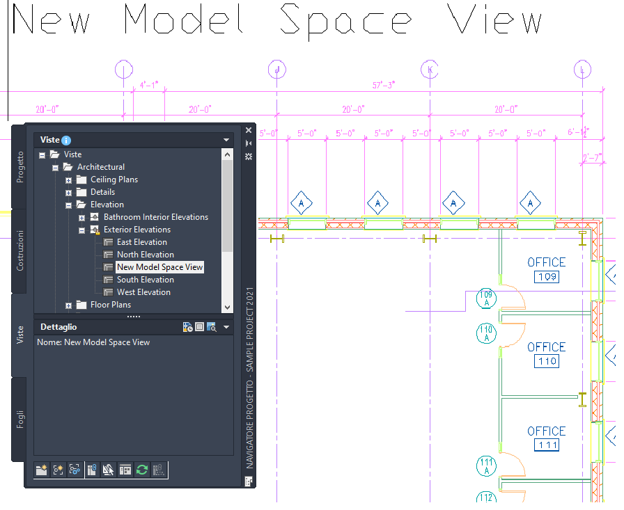 Per creare un disegno visualizzato nella scheda Modello, è necessario salvare il modello di vista di default. Quando si crea il disegno di una nuova vista, tutte le costruzioni ad esso assegnate presenteranno dei riferimenti nel disegno della vista. Se il modello non si apre nello spazio modello attivo, la costruzione presenterà un riferimento nello spazio carta.