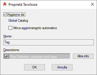 Il testo sotto la casella di controllo indica il nome del catalogo nella Libreria da cui viene aggiornata la tavolozza.