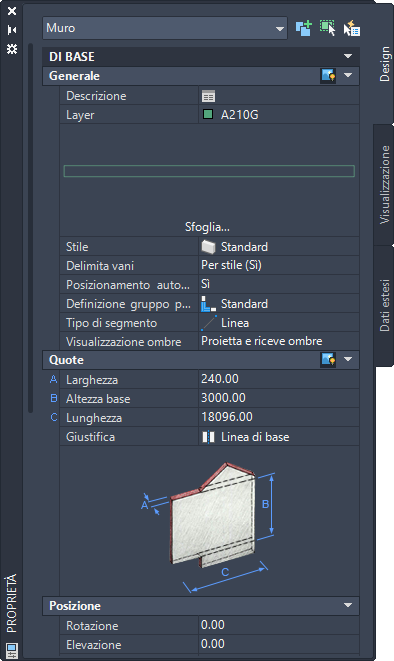 Riquadro proprietà per un oggetto muro standard