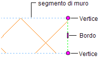 È possibile utilizzare i grip di modifica dinamica per modificare le mazzette e creare le condizioni desiderate per la mazzette. Per tutti componenti muro in corrispondenza della mazzetta specificata vengono visualizzati i grip Vertice e Bordo.