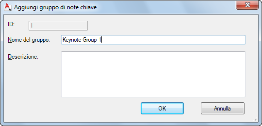 . Viene visualizzata la finestra di dialogo Aggiungi gruppo nella quale il campo di sola lettura ID indica l'identificatore database del nuovo gruppo.