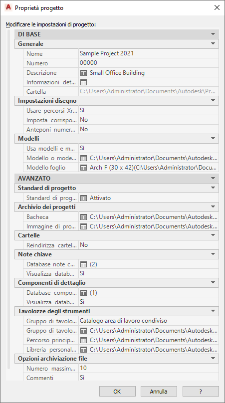 | Nuovo progetto basato su un progetto modello di Set di strumenti AutoCAD Architecture 2027 di default | Punta ad un nuovo file ATC in \<Nome progetto>\Standard\ WorkspaceToolPalettes\ <Nome progetto>.atc Per default, una tavolozza di strumenti vuota è già presente nel file ATC. |