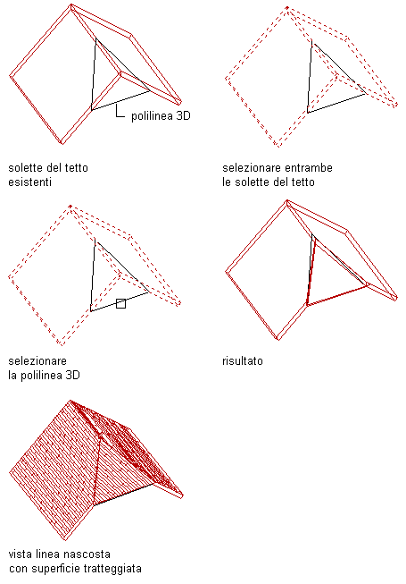 Per modificare le due solette del tetto per aggiungere una terza soletta creando un tetto spiovente ritagliato, attenersi alla procedura indicata di seguito.