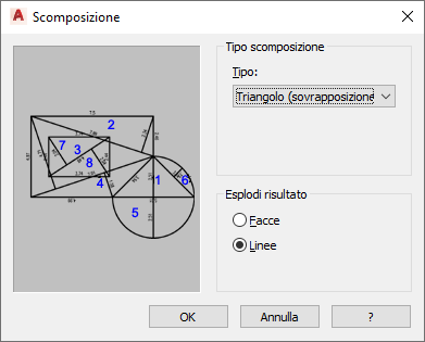 | Convertire il vano scomposto in polilinee chiuse corrispondenti a ciascuna parte scomposta. |