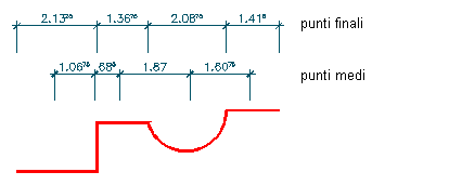 Esempio di quotatura di punti finali e punti medi delle polilinee