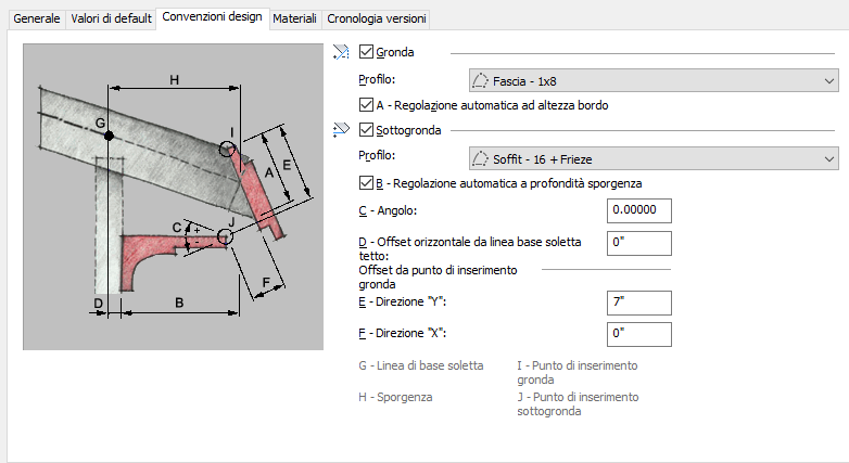 | Utilizzare la gronda con le dimensioni di disegno | Deselezionare Regolazione automatica ad altezza bordo. |